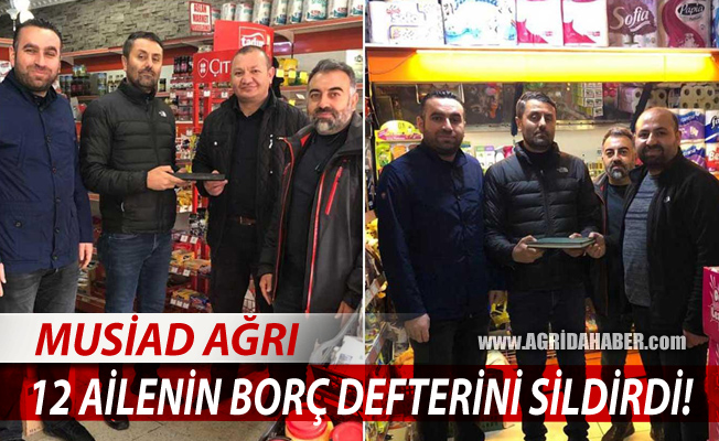 MÜSİAD Ağrı Şubesi, 2 markette veresiye defterlerindeki 12 muhtaç sahibi ailenin borçlarını sildi.