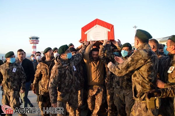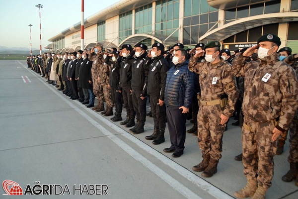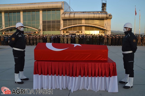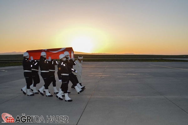 Ağrı'nın Doğubayazıt ilçesinde sınırda bulunan nöbet kulübesine İran tarafından PKK mensuplarınca yapılan roketli saldırıda hayatını kaybeden polisin evli ve bir çocuk babası Veli Kabalay için Ağrı Ahmed-i Hani Havalimanında tören düzenlendi.