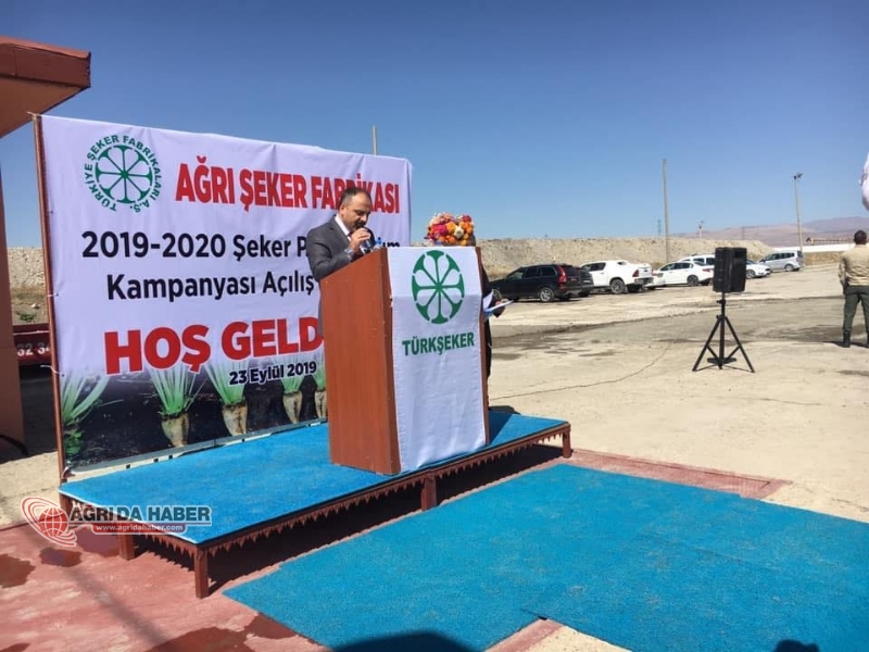 Ağrı Şeker Fabrikası'nda düzenlenen açılış törenine Şeker Fabrikaları Genel Müdürü Mücahit Alkan ,Ağrı Valisi Süleyman Elban, Kamu Kurum Kuruluşlarının Müdürleri ,Stk Temsilcileri ve üreticiler katıldılar. Açılış Töreninde konuşan Ağrı Şeker Fabrikası Müdürü Metin Arslan, şeker pancarının işlenme süresinin 51 gün olacağını aktardı.