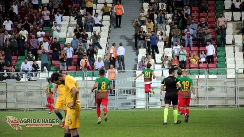 Ceza alanında kalabalık Ağrı savunması arasında topa yükselen Mehmet Erkut, topu kafayla arkaya doğru gönderdi.