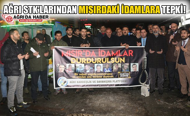 Ağrı'da Kardeşlik ve Dayanışma Platformu (AKADAP) üyeleri, Memur-Sen, Mazlum-Der ve çeşitli Sivil Toplum Kuruluşları temsilcilerinin katılımıyla Mısır'daki idamlara tepki gösterildi.