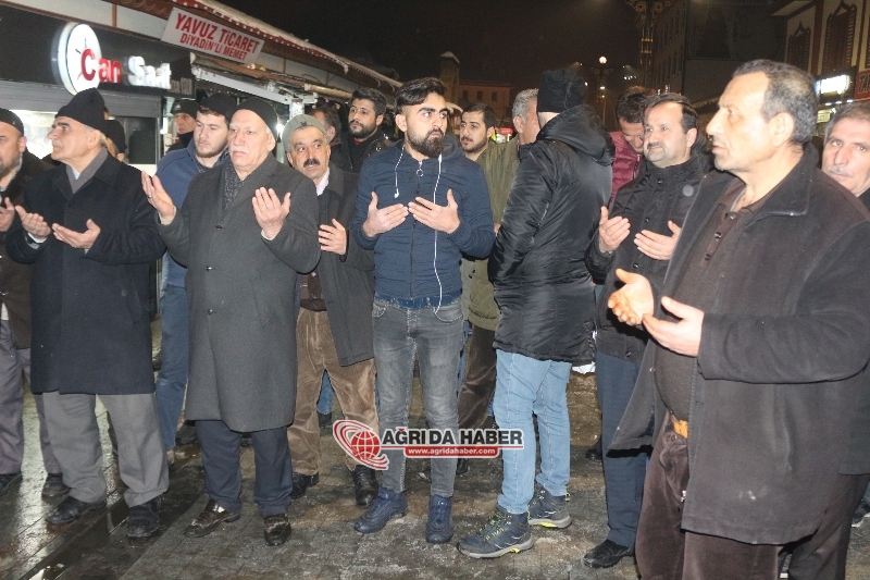 Merkez Camisinde kılınan akşam namazının ardından toplanan grup adına basın açıklamasını İHH Ağrı İl Temsilcisi Kerem Engin okudu.