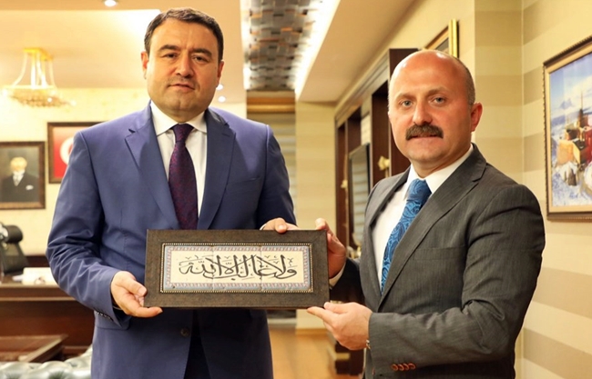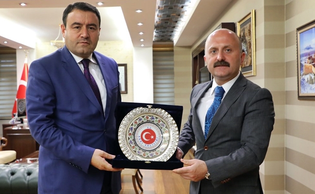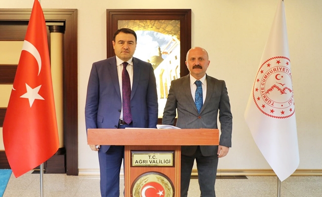 Vali Dr. Osman Varol tarafından karşılanan Ağrı eski Valisi Musa Işın, ziyaretlerinin anısına Şeref Defterini imzaladıktan sonra Vali Varol ile makamında görüştü.