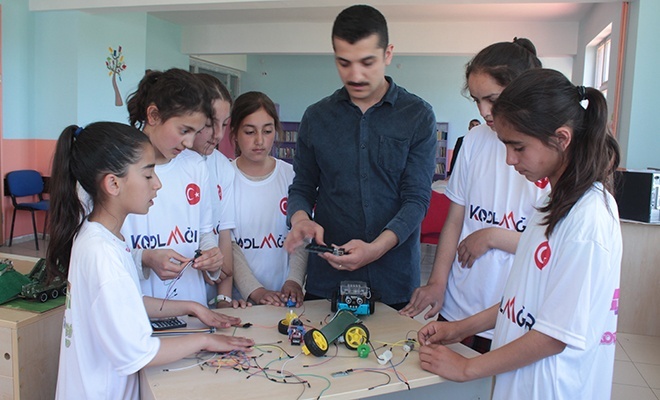 Robotik ve kodlama üzerine anaokullarından lise son sınıfa kadar 107 bin 150 öğrencinin eğitildiği proje kapsamında, il merkezine 10 kilometre uzaklıkta bulunan Aşkale köyü Ahmet Alagöz Ortaokulu da çalışmalarıyla takdir topladı.