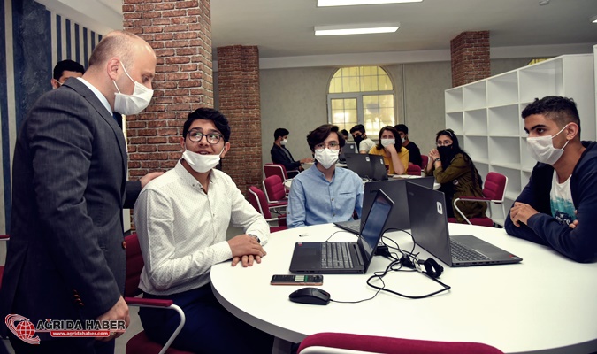 Ağrı Valisi Dr. Osman Varol, Vali Yardımcısı Yusuf Cıbır ve İl Milli Eğitim Müdürü Mehmet Faruk Tekin ile birlikte ilk olarak Start-Up Cafe'yi ziyaret ederek incelemelerde bulundu.