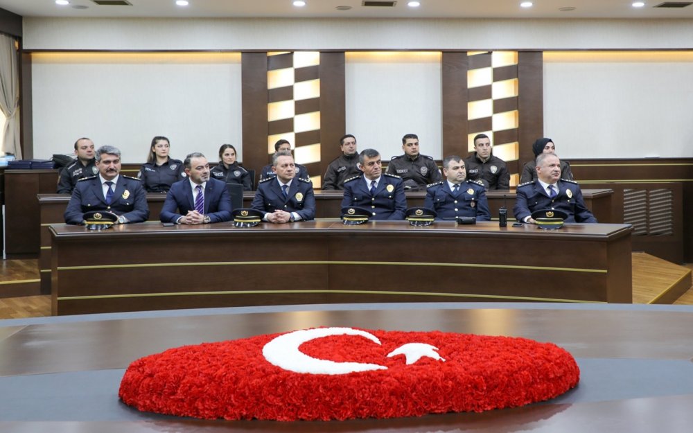 Ağrı Valisi Dr. Osman Varol, Türk Polis Teşkilatı’nın 177. kuruluş yıl dönümü münasebetiyle İl Emniyet Müdürü Nihat Özen, Müdür Yardımcıları, Şube Müdürleri ve Emniyet personeli ile toplantı salonunda bir araya geldi.