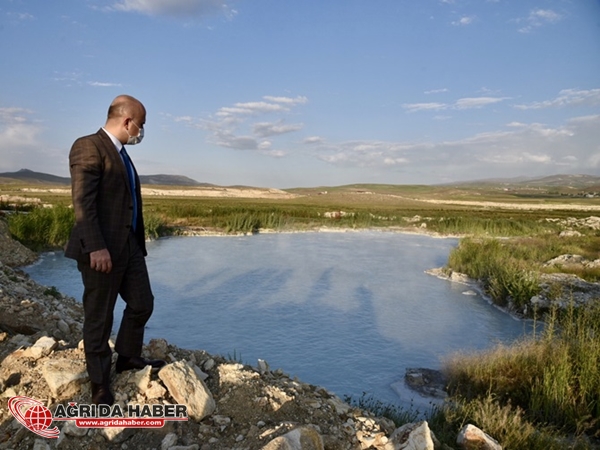 Kaplıcalarda incelemelerde bulunan Vali Varol; kalsiyum, sülfür, karbondioksit, magnezyum, kükürt, bikarbonat ve demir açısından zengin sular hakkında Diyadin Kaymakamı Hasan Doğan'dan bilgi aldı.