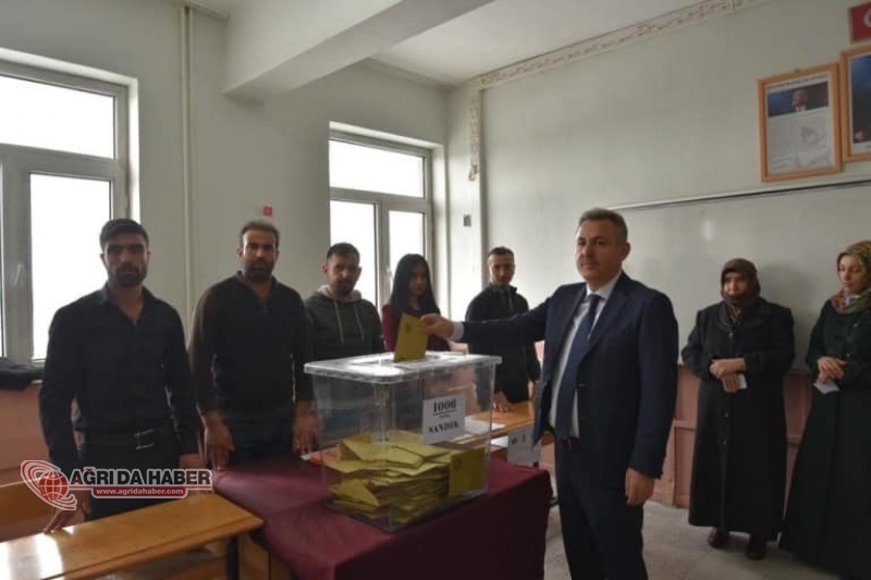 Ağrı Valisi Süleyman Elban ve eşi Hanımefendi Beyza Elban 2019 Mahalli İdareler ile Mahalle Muhtarlıkları Seçimi nedeniyle oylarını 75.Yıl Ortaokulu’nda kullandı.