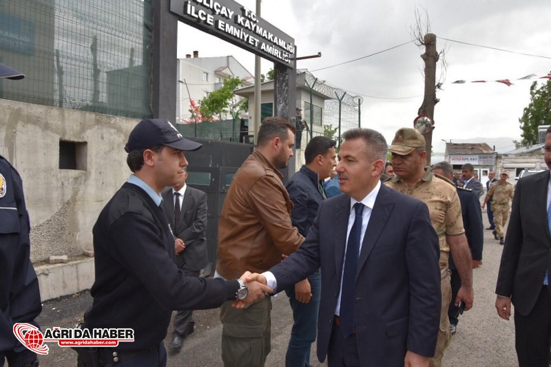 Hastane ziyareti ardından Taşlıçay ilçesine geçen Vali Elban`ı Taşlıçay Kaymakamı Enver Özderin,Taşlıçay Belediye Başkanı İsmail Taşdemir ve diğer protokol üyeleri karşıladı. Taşlıçay`da görev yapan Jandarma ,Emniyet personeli ve vatandaşlarla bayramlaşan Vali Elban, Ramazan Bayramlarını kutladı.