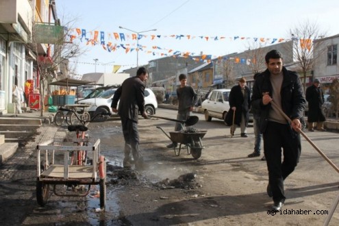 Ağrı’nın Taşlıçay ilçesinde havaların sıcak gitmesi nedeniyle esnaflar bahar temizliğine erken başladı.