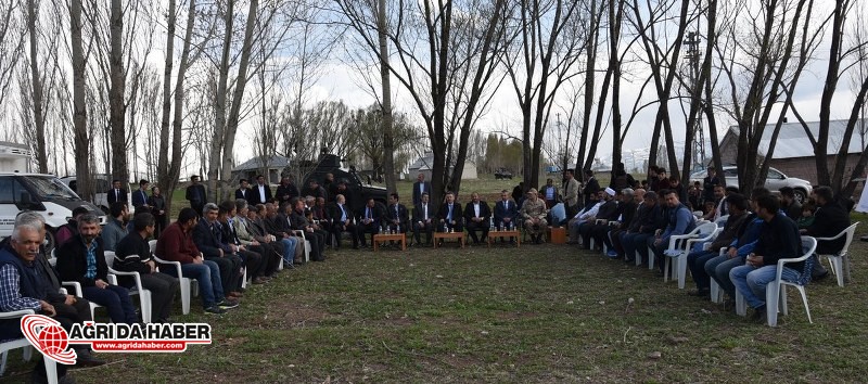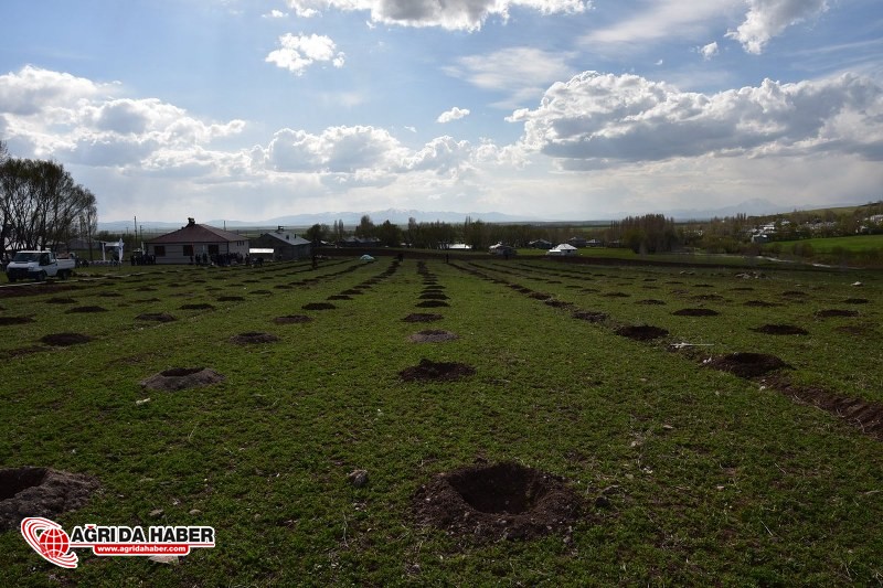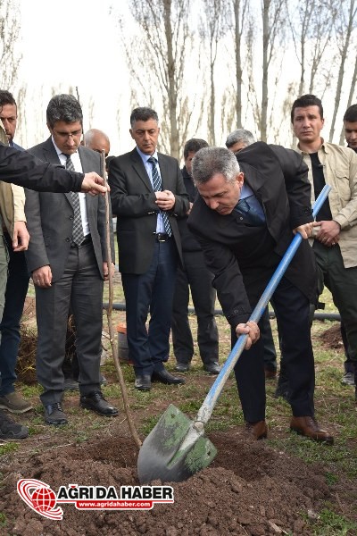 Burada bir konuşma yapan Vali Elban.’’ İlimizde meyveciliği geliştirmek için bu sene 19 bin fidan aldık. 7 ilçe ve il merkezi olmak üzere meyve fidanları ile birlikte en az 5 dekar en fazla 10 dekar olmak üzere meyve bahçeleri oluşturduk. Doğubayazıt ilçemizde ağırlık olarak kaysı, Patnos ilçemizde ağırlık olarak ceviz olmak üzere diğer ilçelerimiz ve il merkezinde kaysı, ceviz, armut, elma ve kiraz fidanlarımızı dikmeye başladık. Bu yıl 630 dönüm meyve bahçeleri oluşturduk. İnşallah beklentimiz fidanlarımızın tutacağı ve uyum sağlayacağı yönünde. Beklentimizi karşılar ve başarı elde edersek diğer yıl hem talep artacak hem de talebi karşılamak için daha fazla bahçe kurmayı planlıyoruz’’ şeklinde konuştu.