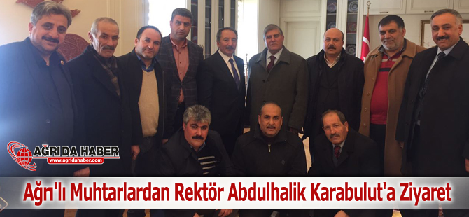Ağrı Merkez Muhtarlar dernek başkanı Murat Gök ile beraber 18 mahalle muhtarı Ağrı İbrahim Çeçen Üniversitesi Rektörü Prof.Dr.Abdülhalik Karabulut'u makamında ziyaret ettiler.