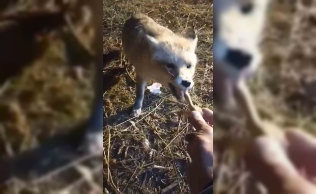 Ağrı’nın Patnos ilçesine bağlı Değirmendüzü köyünde bir evin bahçesine giren aç tilkiyi gören ev sahibi Turgut Demir, tilkinin aç olduğunu fark edince onunla sohbet ederek kendi elleriyle besledi.