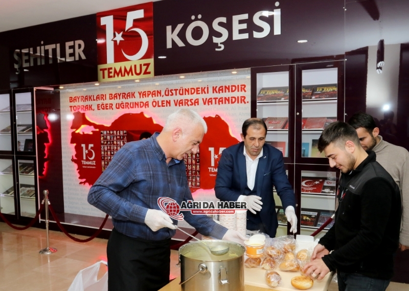 Ağrı İbrahim Çeçen Üniversitesi Kütüphanesinde vize sınavlarına hazırlanan öğrencilere çorba ikram ediliyor.