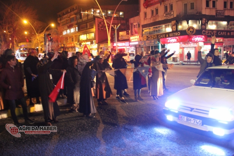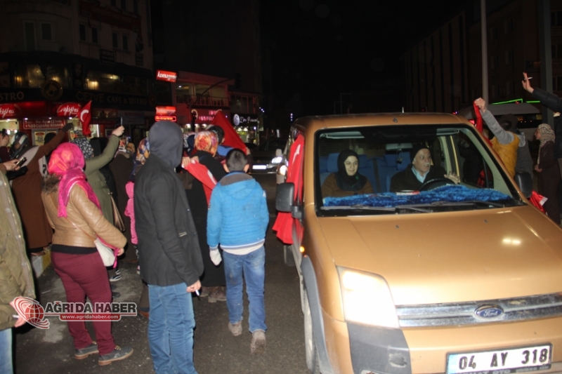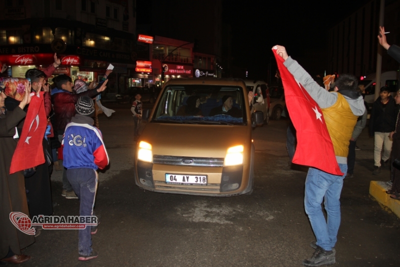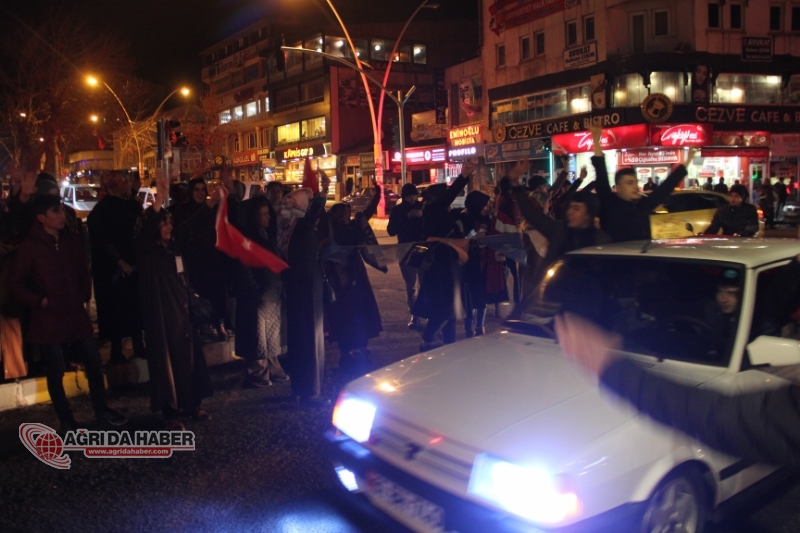 Ağrı Dörtyol Kavşağında AK Parti gönüllülerinin Savcı Sayan'ın kesin olmayan galibiyet sevincini yaşamaya başladı.
