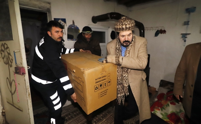 kutlayarak, ailelere yakacak, soba, giyim ve gıda yardımında bulundu.