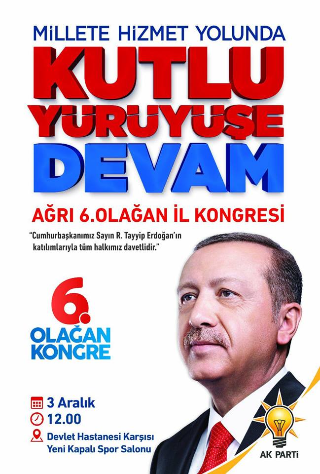 Ak Parti Ağrı 6. Olağan İl kongresi 3 Aralık 2017 Pazar günü yapılacak.