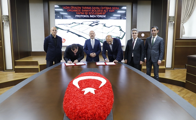Protokol imza töreninde konuşan Vali Osman Varol, “Jeotermal kaynaklarımızı tarımsal amaçla değerlendirmek üzere kurulan Diyadin Tarıma Dayalı İhtisas (Sera) Organize Sanayi Bölgemizin, inşaatı tamamlanan ve halihazırda üretim yapan 40 dekarlık serası dışında alt yapısı olmaması sebebiyle sürdürülemeyen projesinin alt yapı ihalesi son yıllarda çok büyük bir gayret ve iş birliği ile yürütülen çalışmalar neticesinde tamamlandı. Bugün imzalarını attığımız protokol ile alt yapısını tamamlamak üzere yakında çalışmalarına başlayacağımız Diyadin Tarıma Dayalı İhtisas (Sera) Organize Sanayi Bölgemizin bin 300 dekarlık projesinin yaklaşık bin dekarlık alanında kurulacak olan sera ile ilimizin bitkisel üretim hasılası iki katına çıkarılacak; bin 200 kişiye doğrudan istihdam sağlanırken yan sektörlerle yaklaşık 2 bin 400 kişiye ekmek kapısı sağlanacaktır. İlimizin ekonomisine çok ciddi bir kazanım sağlayacak olan bu önemli ve vizyoner projenin hayırlı olmasını diliyor, bu projeyi gerçekleştirmemizi mümkün kılan başta Cumhurbaşkanımız Sayın Recep Tayyip Erdoğan olmak üzere Tarım ve Orman Bakanımıza, Bakanlık çalışanlarına, İl Özel İdaremize, Tarım ve Orman İl Müdürlüğümüze, Diyadin Tarıma Dayalı İhtisas (Sera) Organize Sanayi Bölgesi yönetim ekibine ve siyasetçilerimize teşekkür ediyorum.