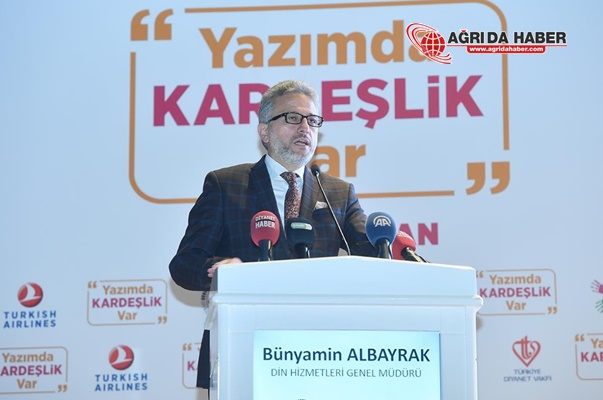 İstanbul Kağıthane’de bulunan Osmanlı Arşivi Daire Başkanlığı Konferans Salonu’nda düzenlenen programda konuşan Diyanet İşleri Başkanı Erbaş, İslam’ın müminleri dili, ırkı, rengi ne olursa olsun kardeş kıldığını ifade ederek, “Bu kardeşliğimizi pekiştirmek, aramızda kopmayacak sevgi bağları inşa etmek adına “Yazımda Kardeşlik Var” projesi kapsamında sizleri ağırlamaktan son derece mutluyuz” dedi.