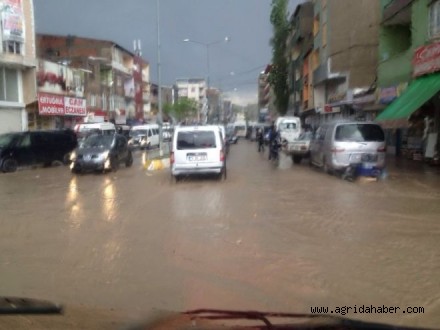 Ağrı’nın Doğubayazit ilçesinde meydana gelen sağanak yağmurda çok sayıda ev ve iş yerleri su altına kaldı.