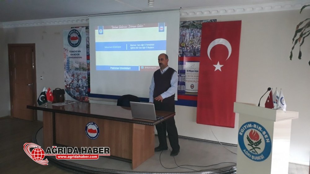 Toplantının açılış konuşmasını yapan Eğitim-Bir-Sen Ağrı Şube Başkanı Süleyman Gümüşer, "Biz emek merkezli bir sivil toplum örgütüyüz. Attığımız her adım eğitim çalışanlarının haklarının geliştirilmesi ve refahının yükseltilmesine dönüktür. Kazanımlarımıza sahip çıkmalı, değersizleştirmeye çalışanlara fırsat vermemeliyiz.