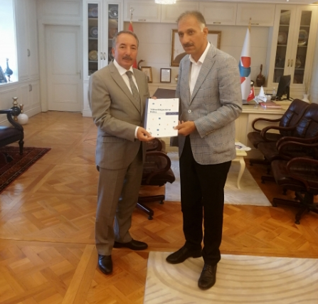 Üniversitenin dünü bugünü ve geleceğe dair hedefleri üzerine verimli bir görüş alış verişinde sağlandığı ziyaret sonunda Şube Başkanı Abdurrahman Aslan, Rektör Karabulut'a Eğitim-Bir-Sen tarafından hazırlanan Yüksek Öğretime Bakış 2019 İzleme ve Değerlendirme Raporunu sundu.