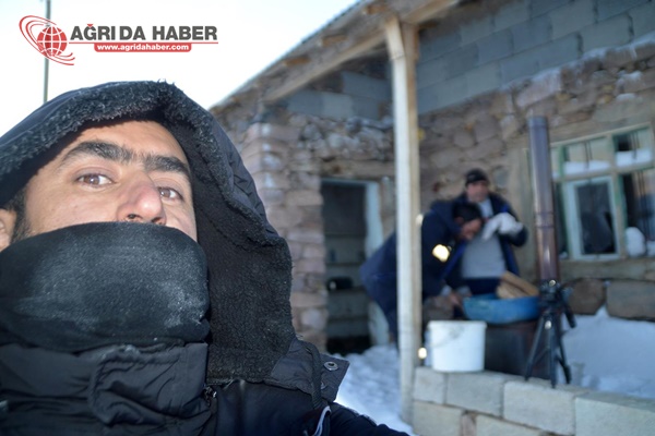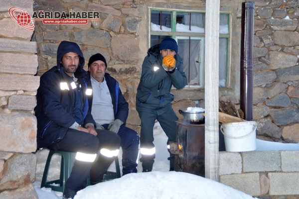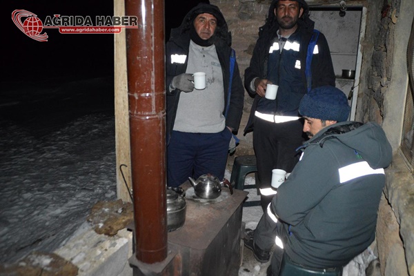 Mezrada, buldukları bir sobayı yakarak ısınmaya çalışan ekip, erittikleri kar ilede sıvı ihtiyaçlarını karşılamaya çalıştı.