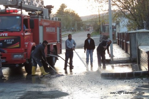 Ağrı’nın Eleşkirt Belediyesi, itfaiye araçlarının yardımıyla cadde ve sokakları tazyikli suyla yıkadı.