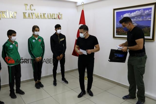 Sporcuların aldıkları Türkiye derecelerinin herkesi gururlandırdığını söyleyen Kaymakam Duruk alınan bu başarılarda emeği geçen herkese teşekkür etti. Başarılı sporculara desteklerinin artarak devam edeceğini söyleyen Kaymakam Duruk ; azimli bir şekilde çalışmalarına devam edip çıtayı yükselterek daha da güzel başarılara ulaşabileceklerini söyledi.Eleşkirt kaymakamı Mustafa Duruk dereceye giren sporculara altın ve bilgisayar hediye etti.Ziyaret hatıra fotoğraflarının çekilmesi sonrası sona erdi.