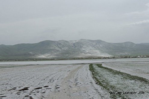 Ağrı'nın Eleşkirt ilçesinde öğlen saatlerinde meydana gelen şiddetli yağış ve fırtınayla birlikte yağan doludan dolayı ekilmiş araziler zara gördü.