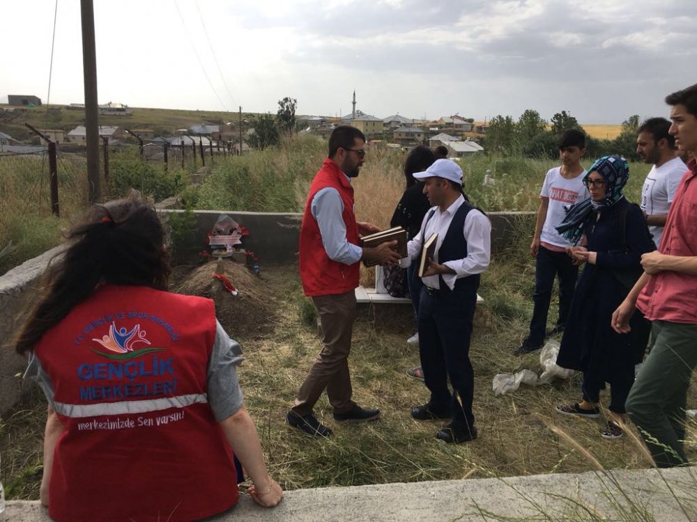 Ağrı Gençlik Merkezi liderleri ve gönüllü gençler ile birlikte minik Leyla’nın Bezirhane köyünde ki kabrini ziyaret ederek Kur-an’ı Kerim okudu.