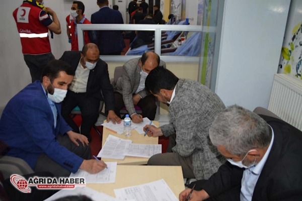Cumhuriyet Caddesi'nde bulunan kan alma merkezinde bir araya gelen HÜDA PAR Ağrı İl Teşkilatı, İl Başkanı Şaban Gökhan ve İl Yönetimi kan verdi.