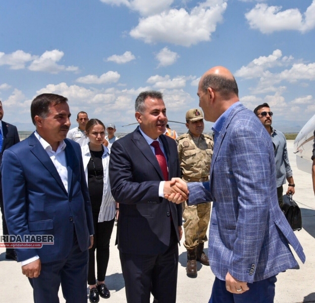 İçişleri Bakanı Süleyman Soylu, çeşitli incelemelerde bulunmak üzere Ağrı'ya geldi.