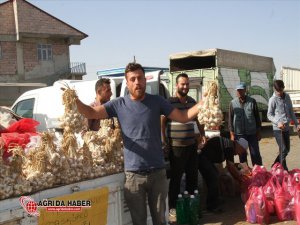 Sarımsak satan Aykut Oktay da Van'dan geldiklerini ve Ağrı hayvan pazarının yoğunluğundan faydalandıklarını söyledi.