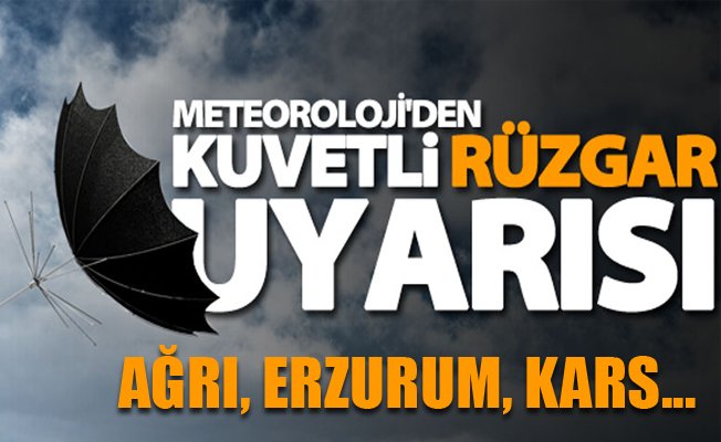 Yetkililer, Erzurum, Kars ve Ağrı'da etkili olacak kuvvetli rüzgar nedeniyle ağaç devrilmesi, ulaşımda aksamalar ve çatı uçması gibi yaşanabilecek olumsuzluklara karşı dikkatli olunması uyarısında bulundu.