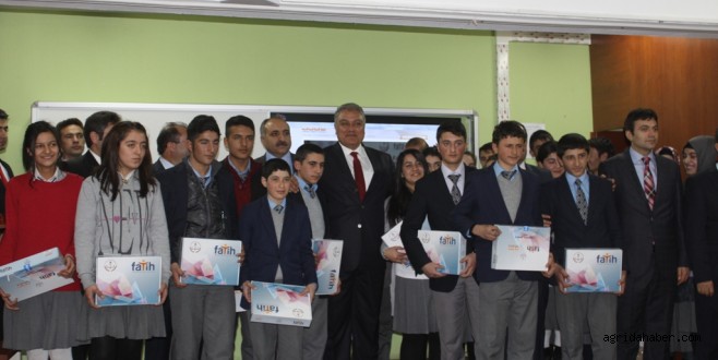 Başbakan Recep Tayyip Erdoğan’ın 81 ilden canlı yayına bağlanarak başlattığı tablet bilgisayar dağıtımı Ağrı’da Hayrettin Atmaca Anadolu Lisesinde gerçekleştirildi.