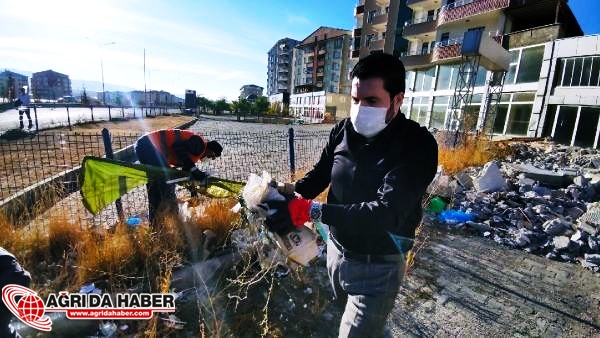 Ağrı Belediye Başkanı Savcı Sayan, temizlik işçileriyle çöp topladı, süpürgeyle yerleri temizledi.