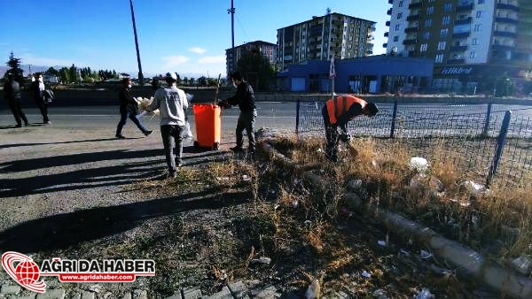 Ağrı Belediye Başkanı Savcı Sayan, saha incelemeleri sırasında Fırat Mahallesi çevre yolu civarında temizlik yapan belediye işçilerine yardım için kolları sıvadı.