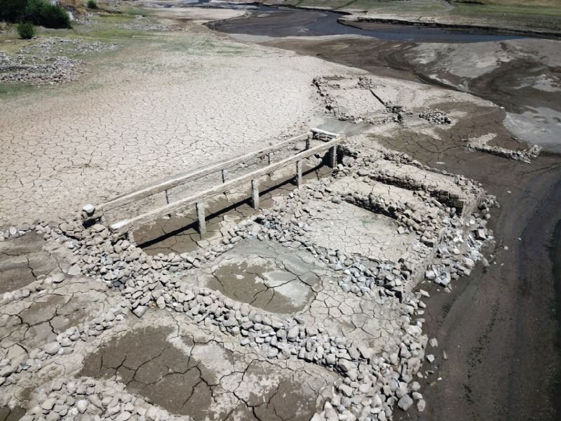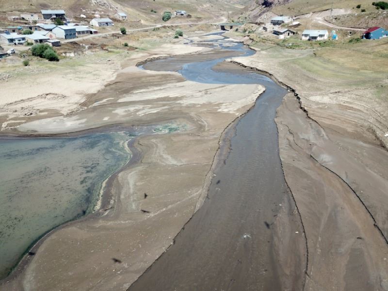 Sıcaklığın 38 dereceyi bulduğu Ağrı'da, Yazıcı Barajı'nın su seviyesi de yaklaşık 5 metre düştü. Barajın faaliyete geçmesinin ardından su altında kalan eski Başçavuş köyü de suyun çekilmesiyle gün yüzüne çıktı.