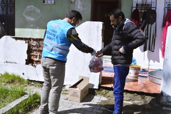 Bu ailelerimize Türkiye Diyanet Vakfı olarak gıda kolisi, kırmızı et, hijyen paketi ve 100 liralık alış veriş kartı dağıttık. Bunun yanında vatandaşlarımızın ilaç gibi diğer ihtiyaçlarını da arkadaşlarımız almaları konusunda yardımcı oluyor. Bu yardımlarımız inşallah imkanlar dahlinde devam edecektir.