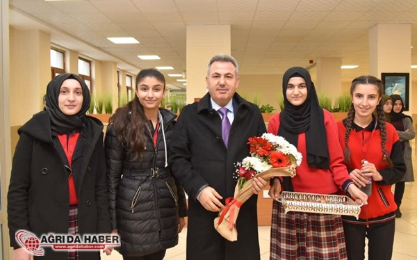 Ağrı Valisi Süleyman Elban'ın okullarına gerçekleştirmiş oldukları ziyaretten memnun kaldıklarını ve mutlu olduklarını belirten öğrenciler, Vali Elban'ın tavsiyelerini dikkatle dinledi.