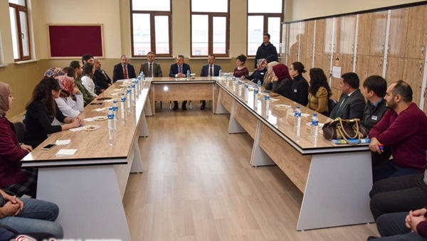 Okula giriş esnasında öğrenciler tarafından çiçekle karşılanan Vali Elban, öğrencilerle bir süre sohbet ettikten sonra okulu ziyaret etti.