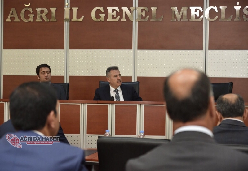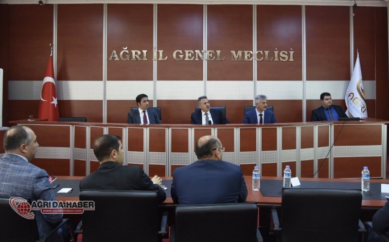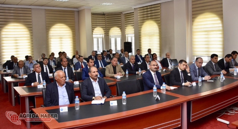 Ağrı İl Özel İdaresi il Genel Meclis Salonunda gerçekleştirilen toplantıya Valimiz Sayın Süleyman Elban, İl Özel İdaresi Genel Sekreteri Erhan Tenekeci, İlçe Kaymakamları, İlçe Belediye Başkanları, yatırımcı kurum ve kuruluşların bölge müdürleri ile ilgili kurum müdürleri katıldı.