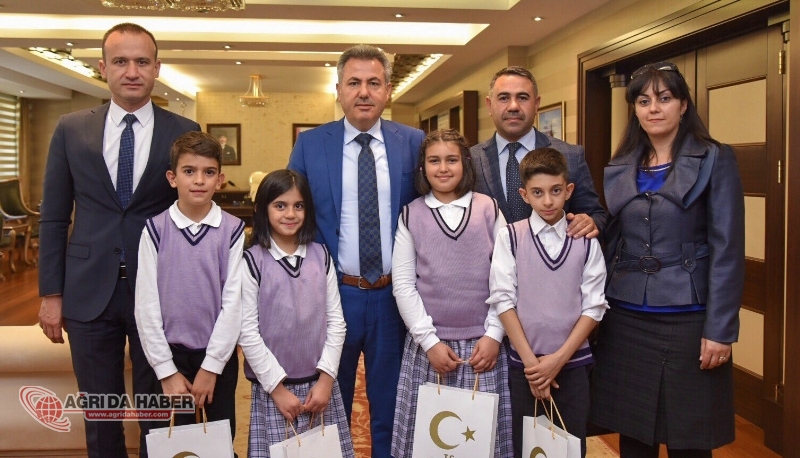 Vali Elban, İlköğretim Haftası münasebetiyle Cumhuriyet İlkokulu öğrencilerini makamında kabul ederek, bir süre sohbet etti.