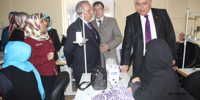 Vali Tekinarslan, daha sonra Doğubayazıt Ticaret ve Sanayi Odası’nın Sodes kapsamında gerçekleştirdiği “Mutlu Ev Kadınları Projesi ile Giyim Teknolojisi Kursu”nun açılını gerçekleştirdi.