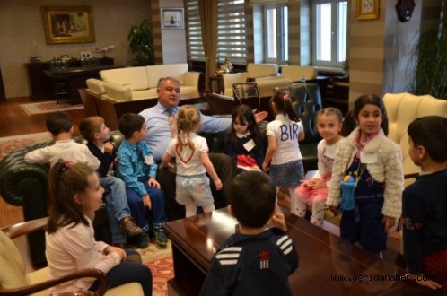 Ağrı Valisi Dr. Mehmet Tekinarslan, Seyit Ali Onbaşı Anaokulu öğrencilerini makamında kabul etti.
