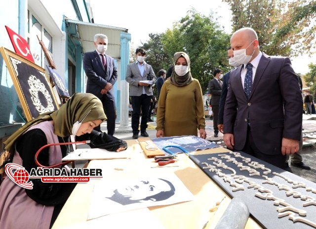 Ağrı Valisi Dr. Osman Varol, İl Milli Eğitim Müdürü Mehmet Faruk Tekin ile birlikte Halk Eğitim Merkezi ve Akşam Sanat Okulu'nda açılan Öğrenme Sergisini ziyaret etti.