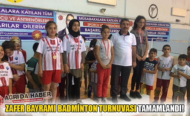 Ağrı Gençlik ve Spor İl Müdürlüğünün 2019 yılı faaliyet programında yer alan 30 Ağustos Zafer Bayramı Badminton turnuvası, 15 Nisan Spor Salonunda oynanan final karşılaşmalarının ardından sona erdi. Yıldızlar, Küçükler ve Minikler olmak üzere üç kategoride düzenlenen müsabakalarda 50 sporcu mücadele etti. Çekişmeli geçen müsabakalar sonunda dereceye giren sporculara madalyaları düzenlenen törenle verildi. Sporcuların madalyalarını Gençlik ve Spor İl Müdürü Cihan Demir, Badminton antrenörü Nevzat Alpaslan ve sporcu velileri tarafından takdim edildi.