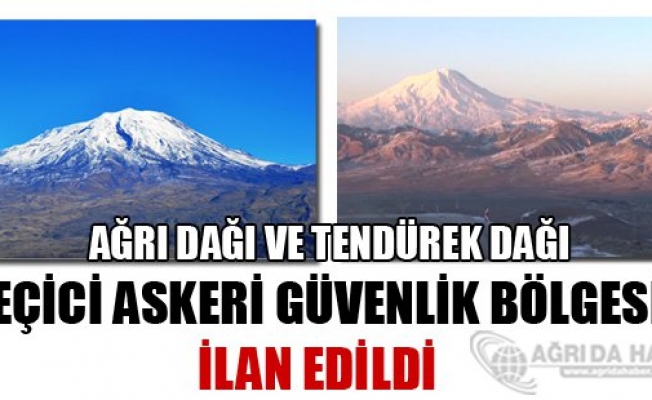 Valilikten yapılan yazılı açıklamada, son günlerde yaşanan terör saldırıları ve çatışmalar nedeniyle Ağrı Dağı ve Tendürek Dağı'nda askeri operasyonlar icra edileceği belirtilerek, operasyonlarda, vatandaşların zarar görmemesi için söz konusu iki alanın 15 gün süreyle "Geçici Askeri Güvenlik Bölgesi" ilan edildiği kaydedildi.