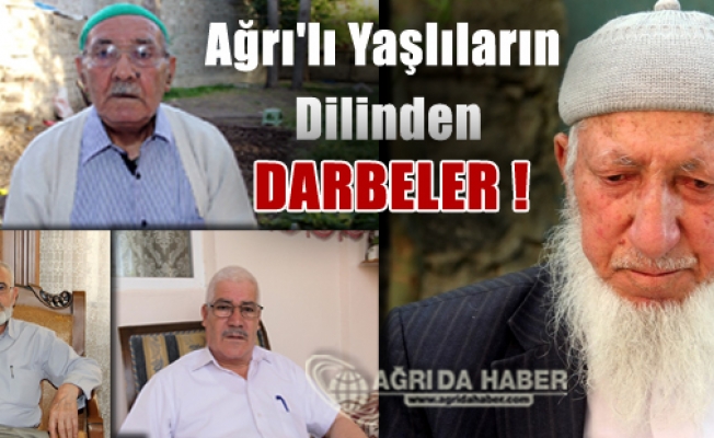 Darbeler sırasında hepsi farklı duygular ve sıkıntılar yaşamışlar. Yoğun baskı ve sorunlar ayrı tecrübeler yaşattırmış onlara. Ağrı merkezde ikamet eden yaşlılar, Türkiye'de yaşanan bazı darbeleri yaşadıklarını birçok zorluğu Cihan Haber Ajansı'na anlatarak, 15 Temmuz akşamında yaşanan darbenin vahameti açısında bir benzerine şahit olmadıklarını belirtiler. Yaşamı oldukları acı tecrübe ve Cumhurbaşkanının önderliğinde bu defa darbeye ölümüne karşı çıktıklarının altını çizdiler.